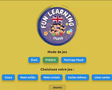 Cinq jeux interactifs : L'apprenant assimile les verbes en exploitant sa mémoire visuelle et auditive.